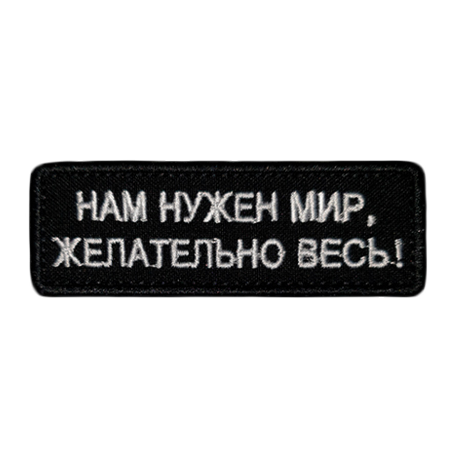 Патч "Нам нужен мир, желательно весь!", цвет черный